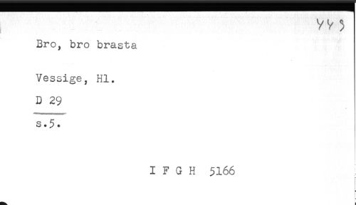 //// Bro, bro brasta //// Vessige, Hl. //// D 29 //// s.5* //// I F G H 5166 //// r //// = ////