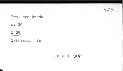 //// Bro, bro breda //// s. 20 //// D 29 //// Svanskog. Vg //// I F G H 30% //// t ////