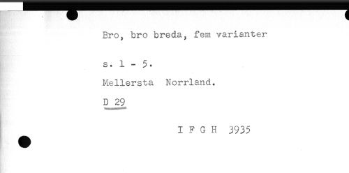 //// Bro, bro breda, fem varianter //// s. 1 - 5. //// Mellersta Norrland. //// D 29 //// —— //// I F G H 3935 ////
