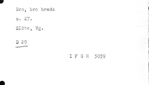 //// Bro, bro breda //// s. 27. ? //// - ] //// Slöte, Vg. //// t- //// D 29 ! //// I F G H 5059 ! //// ! //// t //// C //// i //// t ////