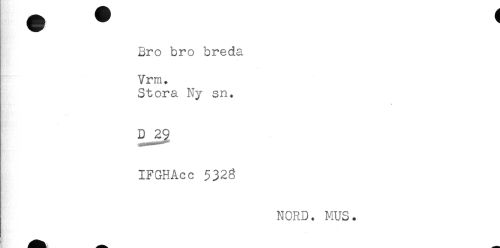 //// Bro bro breda //// Vrm. //// Stora Ny sn. //// IFGHAcc 5328 //// NORD. MUS. ////