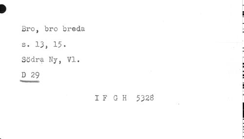 //// Bro, bro breda : //// s. 13, 15. //// Södra Ny, VI. [ //// g //// B 29 ^ //// i //// g //// I F G H 5328 //// ! //// H ////