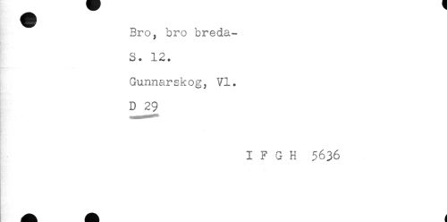 //// Bro, bro breda- //// S. 12. //// Gunnarskog, VI. //// D 29 //// I F G H 5636 ////