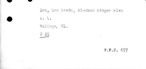 //// Bro, bro breda, klockan ringer elva //// s. 4 * //// Valinge. Hl. //// t //// D 29 //// V.F.F. 677 //// - # ////