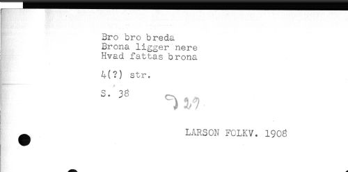 //// I Bro bro breda //// Brona ligger nere //// } Hvad fattas brona //// I 4(?) str. //// S. 38 //// ! .'' < ////