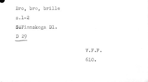 //// Rro, oro, orme //// s.1-2 //// S$Finnskoga Dl. //// D 29 //// V.F.F. //// 610. //// J ////