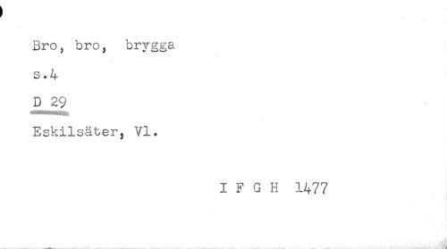//// Bro, bro, brygga //// s //// D 29 //// Eskilsäter, VI. //// I F G H 1477 ////