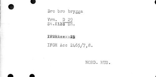//// Bro bro brygga //// Vrm. D 29 //// St.Ki&s sn. //// i //// iXaHAzxxxgR //// IFGH Acc 2465/7,3. //// t //// NORD. MUS. ////