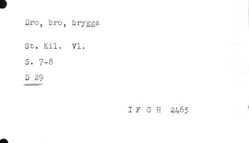 //// Bro, bro, brygga //// St. Kil. VI. //// S. 7-8 //// D 29 //// I F G H 2465 ////