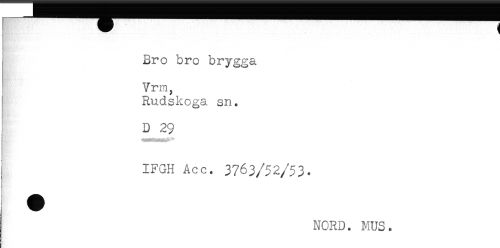 //// Bro bro brygga //// Vrm, //// Rudskoga sn. //// D 29 //// IFGH Acc. 3763/52/53. //// NORD. MUS. ////