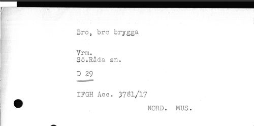 //// I Bro, bro brygga //// - - //// ' //// Vrm. //// Sö.Råda sn. //// D 29 //// ] IFGH Acc. 3781/17 //// ^ NORD. MUS. ////