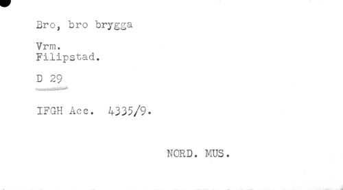 //// Bro, bro brygga //// Vrm. //// Filipstad. //// D 29 //// IFGH Acc. 4335/9. //// NORD. MUS. //// - ... J ////
