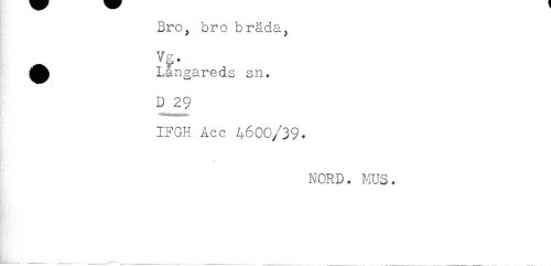 //// uro, oro araaa, //// ^ Langareds sn. //// D_29 //// IB^GH Acc 4600/39. //// NORD. MUS. ////