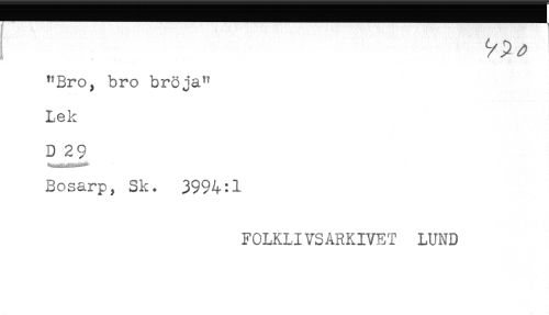 //// "Bro, bro bröja" //// Lek //// D 29 //// Bosarp, Sk. 3994:1 //// FOLKLIVSARKIVET LUND ////