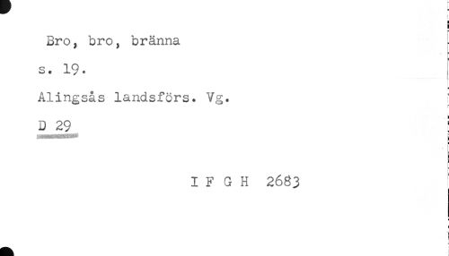//// ! //// r //// Bro, bro, bränna //// s. 19. //// a //// Alingsås landsförs^ Vg. ? //// D 29 I //// I F G H 2683 //// E ////