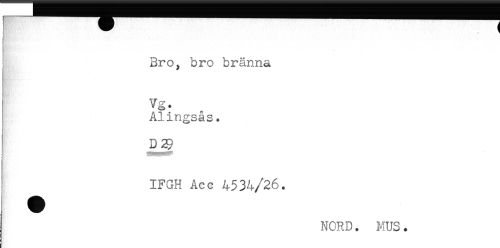 //// ^ . ( //// i ' ' //// Bro, bro bränna //// Vg< //// Alingsås. //// IFGH Acc 4534/26. //// NORD. MUS. ////