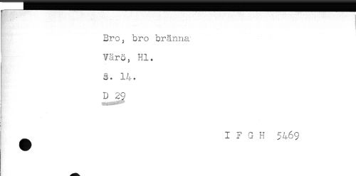 //// Bro, bro bränna //// Värö, Hl. //// s. 14 ^ //// D 29 //// t //// ^ I F G H 5469 ////