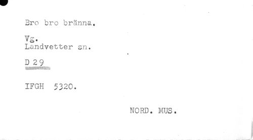 //// Bro bro bränna. //// v o * //// Landvetter sn. //// + //// D 29 //// IFGH 5320. ////