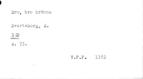 //// t //// Bro. bro bränna //// * ^ //// i //// i //// < //// Svarteborg, 3. //// t //// S. 75. //// t //// : //// i //// ! //// V.F.F. 1162 //// w ////