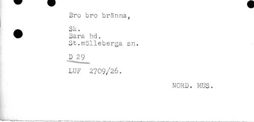 //// ^ Sk. //// W Bara hd. //// St.mölieberga sn. //// D 29 //// LUF 2709/26. //// NORD. MUS. ////