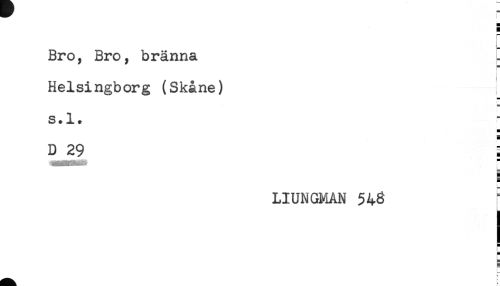 //// H //// Bro, Bro, bränna 1 //// Helsingborg (Skåne) I //// s.l* //// D 29 //// LIUNGMAN 548 r ////