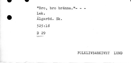 //// "Bro, bro bränna."- - - //// Lek. //// ^ Älgaröd. Sk. //// 525:18 //// D 29 ////