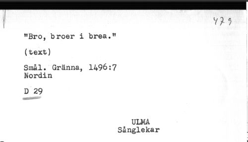 //// I V ? ^ ! //// "Bro, broer i brea." //// (text) //// - - - ' ' . //// t //// i //// Smål. Gränna, 1496:7 //// Nordin //// D 29 //// I //// < //// t ////