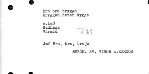//// Bro bru brygga //// bryggan heter Rygga //// c //// s.143 //// Rudhaga //// Värmld ^ //// Jmf Bro, bro, breja //// STRÖM. SV. VISOR o.RAMSOR //// * ////