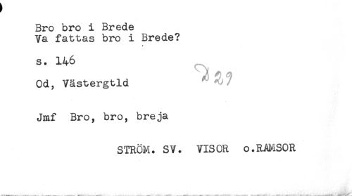 //// Bro bro i Brede //// Va fattas bro i Brede? //// y //// S. 146 //// Od, Västergtld //// Jmf Bro, bro, breja //// STRÖM. SV. VISOR o.RAMSOR ////