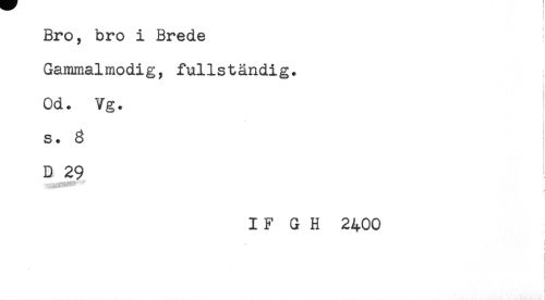 //// Bro, bro i Brede //// Gammalmodig, fullständig. //// Od. Vg. //// s. 3 //// B 29 //// < //// IFGH 2400 //// i //// * i //// i //// ! //// t //// i ////
