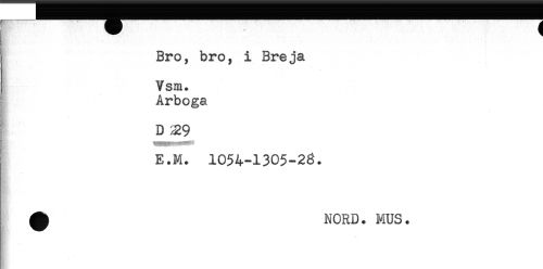 //// - 1 //// Bro, bro, i Breja //// Vsm. //// Arboga //// D //// E.M. 1054-1305-23. //// ^ NORD. MUS. //// K //// /