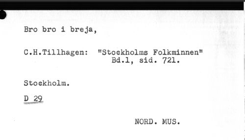 //// < //// ) //// * //// C.H.Tillhagen: "Stockholms Folkminnen" //// Bd.l, sid. 721. //// Stockholm. //// ! //// D29 //// * ////