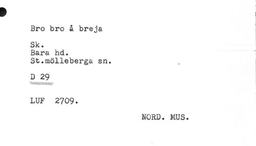 //// Bro bro å breja //// Sk. //// Bara hd. //// St.mölleberga sn. . ! //// D 29 //// LUF 2709. ////
