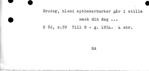 //// Brodey, bland apthekarburkar går i stilla //// ^ mack din dag .+. //// B 82, s.59 Till B - g. 1354. 4 str. //// RA ////