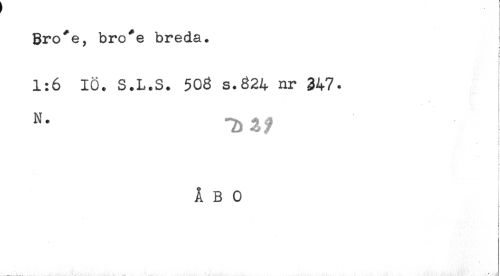//// Bro*e, bro*e breda. ! //// i //// i //// - //// t //// - //// 1:6 IÖ. S.L.S. 503 s.324 nr 347. //// i //// C //// ÅBO //// ...... - . ' . .. .. ' ' ! ////
