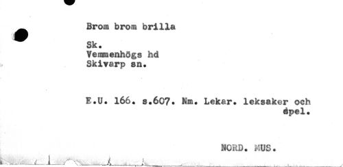 //// ^ Brom brom brilla //// Sk. //// Vennaenhögs hd //// Skivarp sa. //// E.U. 166. 8.607. Nm. Lekar, leksaker och //// épel. //// * //// NORD. MUS. //// —,, ^JL---- V ^ — . _, -., ^ . _ ^ ;____ _ _y ////