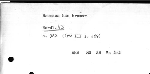 //// Bromsen han brumar //// ... , //// NordlJ'^ //// s. 3^2 (Arw III s. 469) //// ARW MS KB Vs 2:2 ////