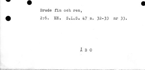 //// Brude fin och ren, //// ^ 2:6. EE. S.L.S. 47 s. 32-33 nr 33. //// ÅBO ////