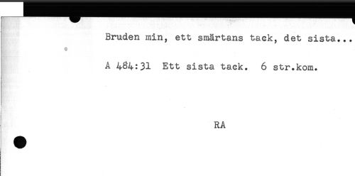 //// j Bruden min, ett smärtans tack, det sista... //// R * //// A 4^4:31 Ett sista tack. 6 str.kom. //// . //// RA ////