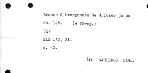 //// Bruden å brudgummen de dricker ju nu //// No. 146. föreg.) //// (R) //// SLS 130, 21. //// s. 32. //// ÅBO SJÖBERGS SAML. ////