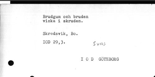 //// '.. — . - * * ** - —' //// - . . , .--. //// Brudgum och bruden //// viska i skruden. //// Skredsvik, Bo. //// A //// IOD 29,3. ^^^ //// * //// ^ IOD GÖTEBORG ////