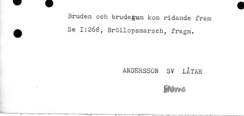 //// Bruden och brudegum kom ridande fram //// ^ Se 1:263, Bröllopsmarsch, fragm. //// ANDERSSON SV LÅTAR //// . ^ ----—----,---^---__---- _ . ////