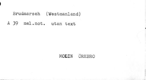 //// Brudmarsch (We stmanland) //// L //// A 39 mel.not. utan text //// < //// t //// < //// MODIN ÖREBRO //// t //// < ////
