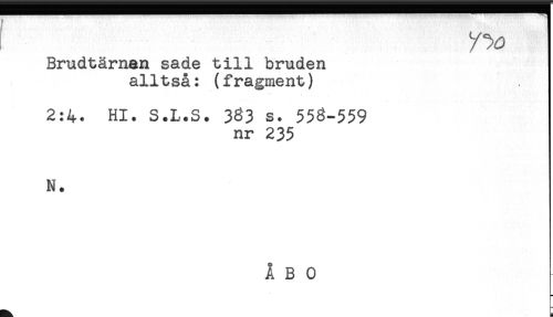 //// Brudtärnan sade till bruden //// alltså: (fragment) //// 2:4. Hl. S.L.S. 363 s. 553-559 //// nr 235 //// N. ////