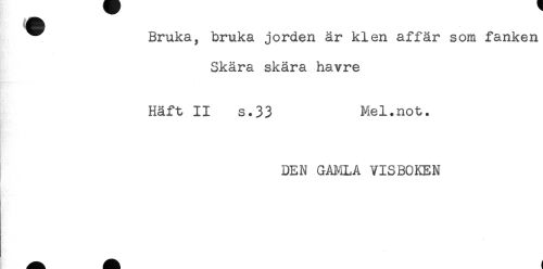 //// ^ Bruka, bruka jorden är klen affär som fanken //// Skära skära havre //// Häft II s.33 Mel.not. //// DEN GAMLA VISBOKEN ////