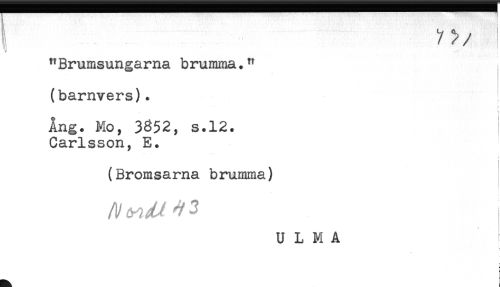 //// "Brumsungarna brumma." //// (barnvers). //// t //// Ang. Mo, 3^52, s.12. //// Carlsson, E. //// < //// (Bromsarna brumma) //// ULMA ////