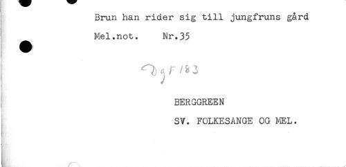 //// ; brun nan naer sig tm jungiruns ga ra //// * Mel.not. Nr.35 //// BERGGREEN //// v //// ^ SV. FOLKESANGE OG MEL. ////