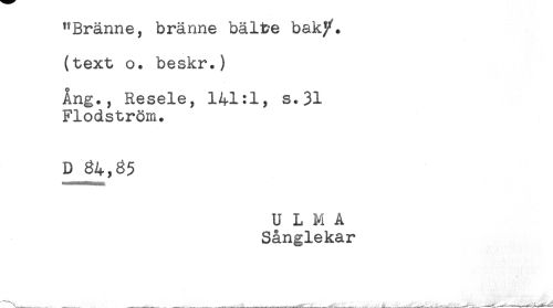 //// ** JDJL cmiit; , ui <3.imc i*/<a.JL i; ss * //// (text o. beskr.) //// Ang., Resele, 141ily s.31 //// Flodström. //// ULMA //// Sånglekar ////