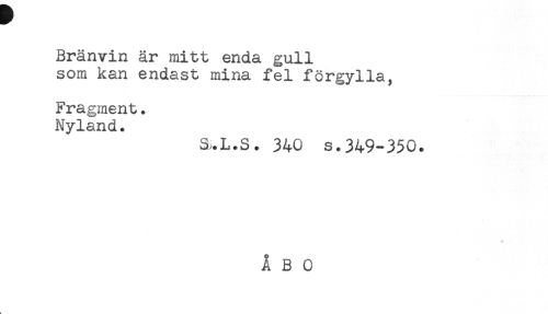 //// Bränvin är mitt enda gull //// som kan endast mina fel förgylla, //// Fragment. //// Nyland. //// S.L.S. 340 s.349-350. //// * ////