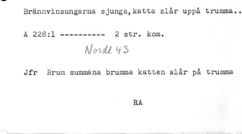 //// A 228:1----- 2 str. kom. //// Jfr Brum summana brumma katten slår på trumma //// RA ////